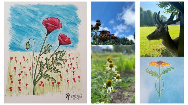 Ik zag deze klaprozen in een veld kort na het overlijden van mijn vrouw Joke. Ik kwam thuis en heb gelijk deze afbeelding gemaakt. Ik zat er ’s avonds naar te kijken en toen zag ik het: de twee rode klaprozen zijn mijn dochter en ik en de 3e klaproos was mijn overleden vrouw. In mijn onderbewustzijn heb ik de afbeelding gemaakt.